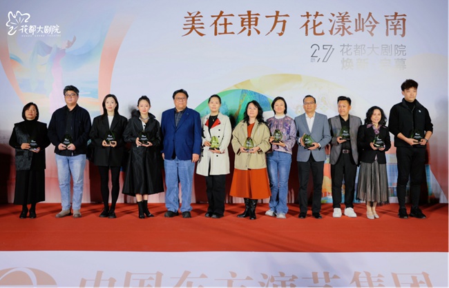随后的“湾区演艺生态共建伙伴”授牌仪式上,中国东方演艺集团将以花都大剧院为锚点,以广东省歌舞剧院、南方歌舞团、广东省木偶艺术剧院、广东音乐曲艺团、广州话剧艺术中心、广州歌舞剧院、广州粤剧院、广州杂技艺术剧院、广州芭蕾舞剧院、深圳粤剧团、佛山粤剧院等11家“演艺生态共建伙伴”联动,构建合作共赢的艺术生态系统,进一步推动大湾区跨区域演艺资源共享与剧目流通,助力花都在湾区演艺市场协同发展中注入新活力、迈上新台阶。